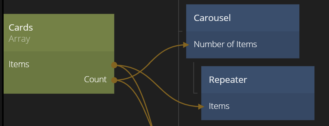 Note that the Carousel node should have its cards as direct children. This can be achieved by either manually putting them there or using a Repeater node.